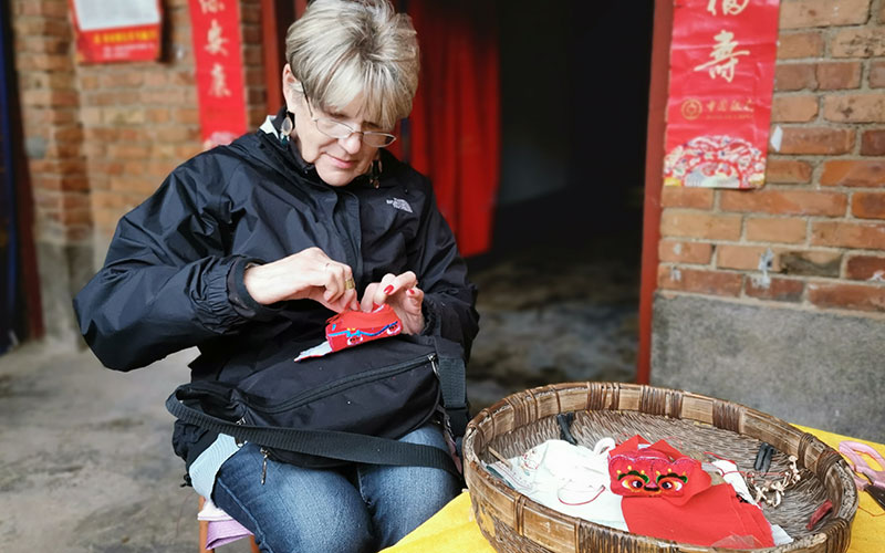 Mrs. Janelle Meyer is trying to make tiger head shoes in Xi'an!
