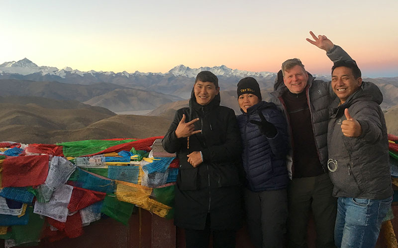 Mr. Mark George and Ms. An Thi Truong Le admire the Mt. Qomolangma with their guide and driver in Tibet!