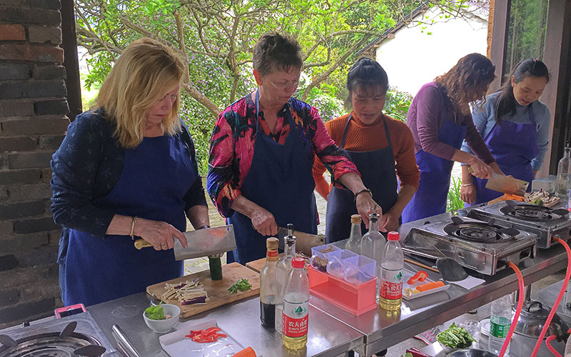Carolyn, Clara and Janice have fun in the cooking class of Yangshuo!